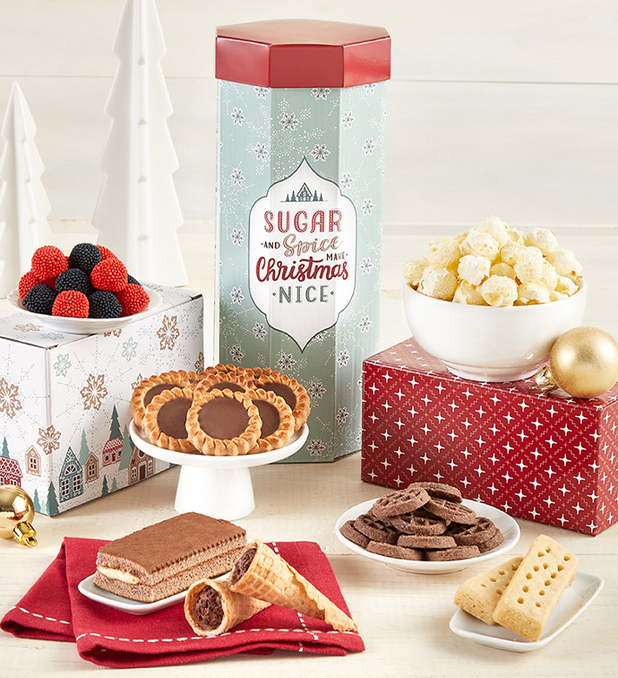 Merry Christmas 5 Box Gift Tower and 2 Gallon Popcorn Tin 3 Flavor